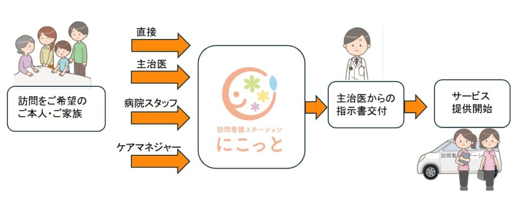 電話・メール等で「訪問看護ステーションにこっと」まで直接お問い合わせください。